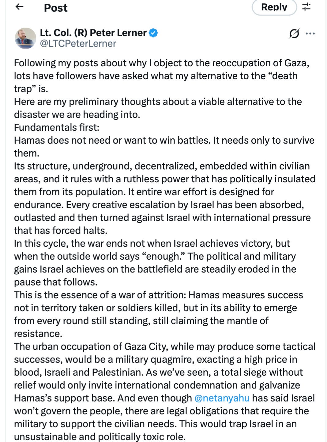 And he’s not alone. And I think that it is the IDF top brass saying, “We can’t do this. They’ve said publicly, “We’re going into a black hole. We’re going into a trap. This is gonna be our Vietnam.” So we’ll see what happens. But I think that he’s been very bold, the Chief of Staff, in challenging Prime Minister Netanyahu openly.