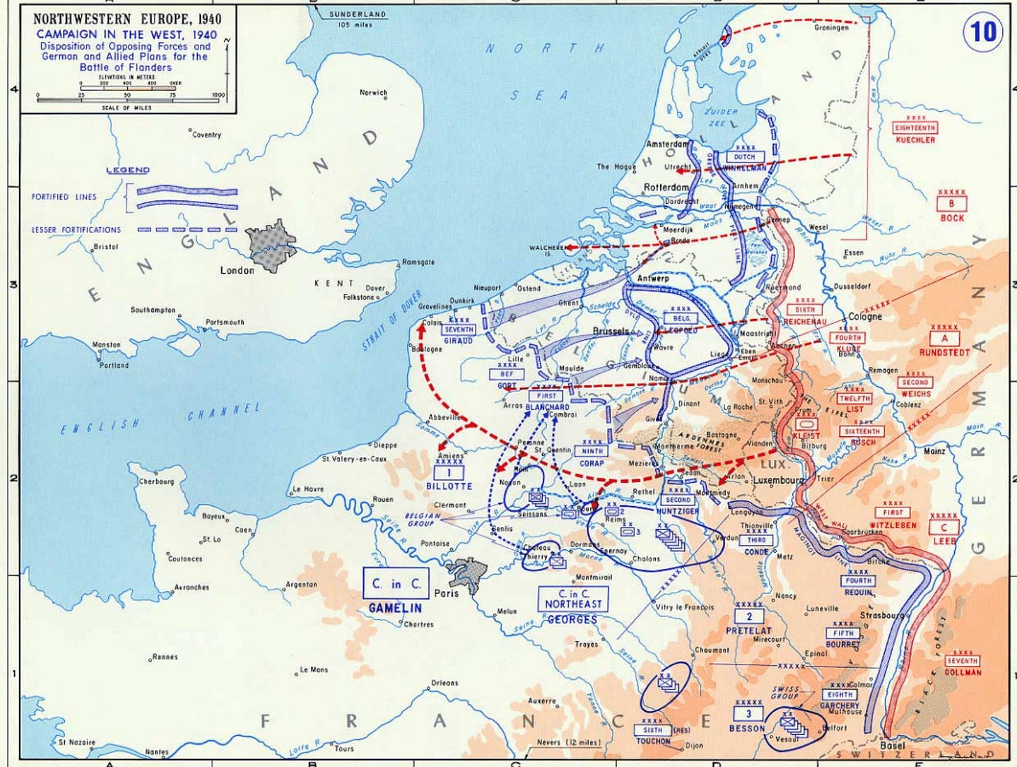 The French response, or rather lack of response, to Belgian naïveté was just as self-defeating. France avoided fortifying the Franco-Belgian border for fear of offending the Belgians—a political decision, not a military one. When fighting began in earnest, in 1940, these problems were compounded. Commanders and their units found themselves impaired by slow, unreliable communications. The British, French, and Belgian armies suffered from a near-total lack of coordination. The Allied plan to oppose the Germans by advancing into Belgium was poorly conceived and even more poorly executed. The creative and well-executed German armored thrust through the Ardennes forest took the Allies by surprise at their weakest point and, very quickly, cut the Allied armies in two, pinning the French First Army and the British Expeditionary Force against the Channel coast at Dunkirk. The trapped armies included many of the Allies’ best-equipped and most experienced units.